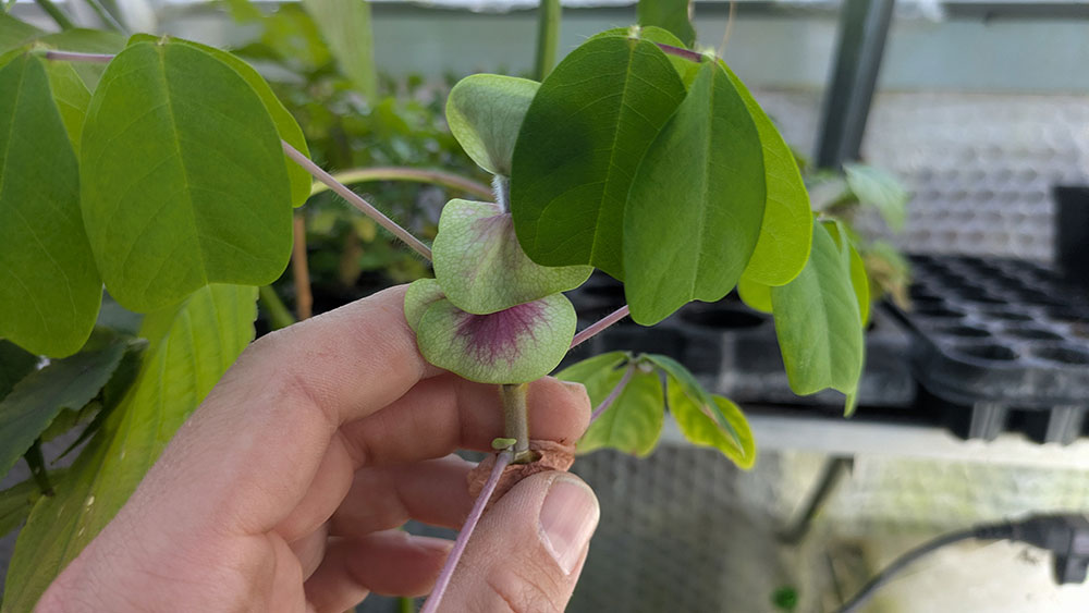 Hardy down to around -5 °C (23 °F), Amicia zygomeris tolerates light frost but may die back to the ground in colder weather. In areas with harsher winters, protect the crown with a thick mulch or overwinter in a frost-free greenhouse. New shoots emerge in spring once temperatures rise.
