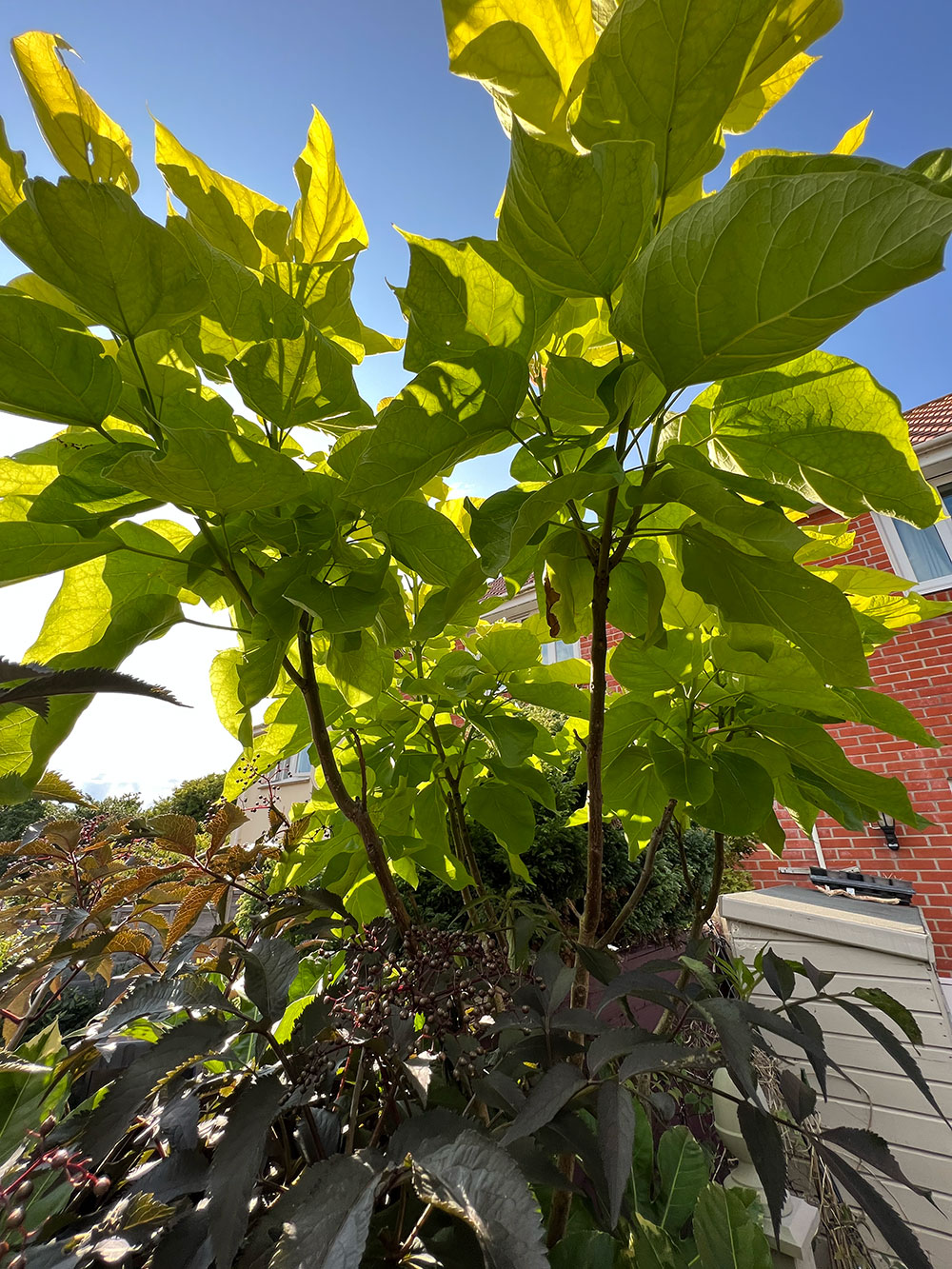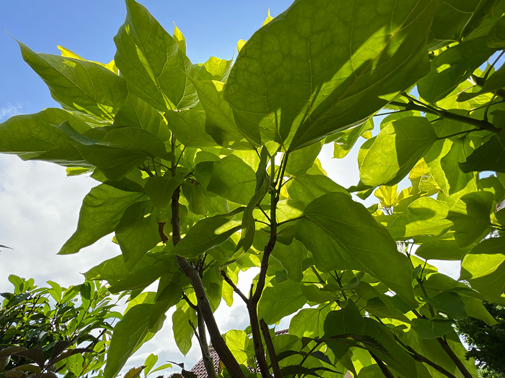 This catalpa cultivar thrives in full sun to partial shade. Full sun enhances the vivid golden color of the leaves, while too much shade can cause them to fade to green. It tolerates a range of light conditions but performs best in open, sunny positions with good air circulation.