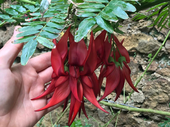 Clianthus puniceus, commonly called the New Zealand parrot’s beak or kaka beak, is native to New Zealand. It is celebrated for its cascading clusters of brilliant scarlet, parrot-shaped flowers and…