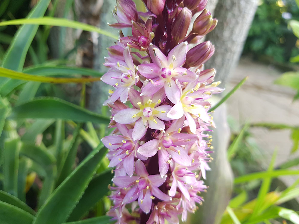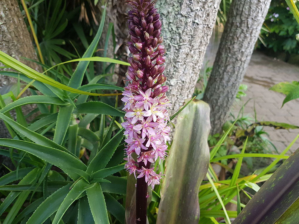Eucomis ‘Sparkling Burgundy’ enjoys consistently moist but well-drained soil during the active growing season. It appreciates regular watering, particularly in warm weather when the foliage and flower spike are developing. However, the bulb is prone to rot if left in waterlogged soil. Container-grown plants should be watered deeply but allowed to drain freely. Once the plant begins to fade in autumn, watering should be reduced significantly, keeping the soil only lightly moist as the bulb enters dormancy.