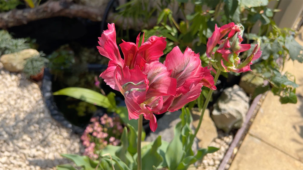 Last year we grew an array of bulbs, including some exciting new tulip varieties such as Red Wave and DJ Parrot. Both have incredible, undulating petals in fiery tropical shades that fit perfectly with the overall feel of the garden. I actually planted them during the week of Christmas – a little later than ideal – but they still performed beautifully, and I saved quite a lot of money by shopping the late-season bulb sales.