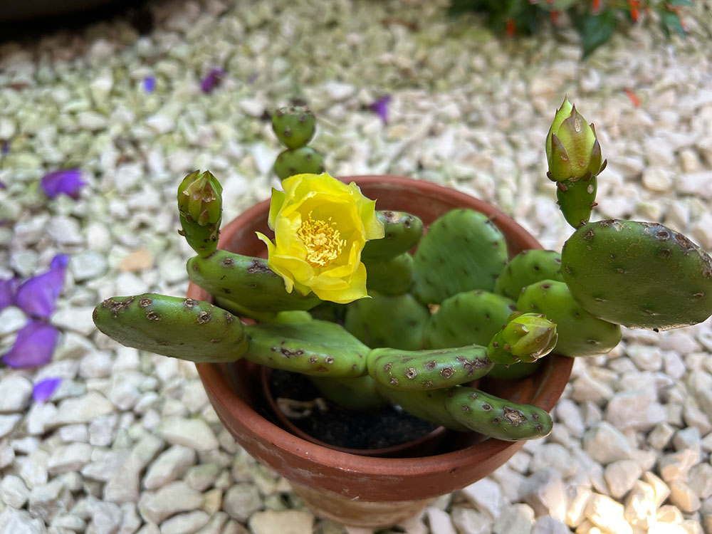 This prickly pear thrives in full sun, requiring at least six hours of direct sunlight daily for optimal growth, flowering, and pad colouring. In deep shade it becomes weak, stretched, and more prone to rot. Full exposure ensures firm, compact pads and vibrant yellow blooms. Gardeners in cooler climates should provide the warmest, sunniest microclimate available—south-facing gravel beds, slopes, and raised planters are ideal.